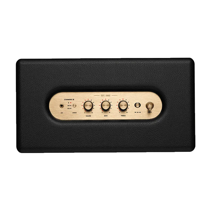 Stanmore III имеет еще более широкий звуковой диапазон, чем ее предшественница. Наполняет дом фирменным звуком Marshall, разработанным для более глубокого восприятия. Новое поколение Stanmore оснащено динамиками, расположенными под углом сверху, и обновленными волноводами, обеспечивающими стабильно объемное звучание, которое настолько мощно, что преследует вас по всей комнате. Функция Dynamic Loudness регулирует тональный баланс звука для великолепного звучания вашей музыки на любой громкости. Габариты модели — 203х188х350 мм. Вес изделия — 4,3 кг. Корпус сделан из пластика/металла. Передача данных осуществляется с помощью Bluetooth 5.2.